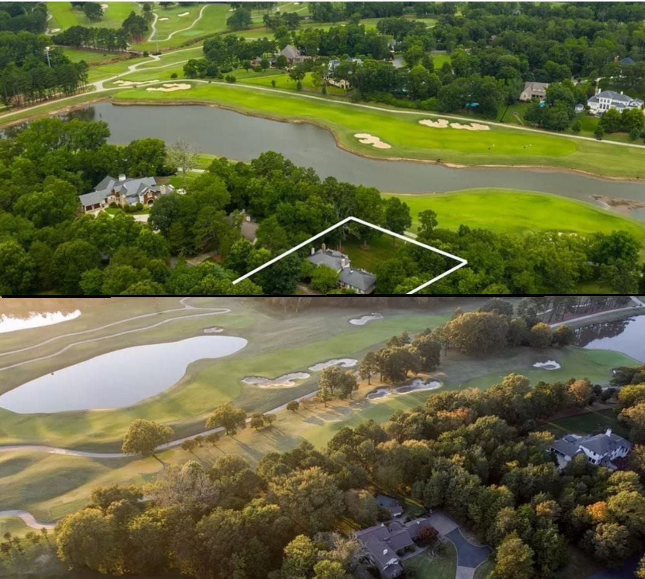 GOLF COURSE VIEWS: Properties bought last month by former Panthers Greg Olsen (top) and Jonathan Stewart (bottom) on Parview Drive command views of Carmel Country Club’s golf course. (Photos from Zillow)