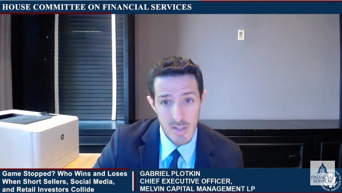 Plotkin testified virtually to Congress in 2021 about the unusual trades in GameStop that decimated his firm, Melvin Capital Management.
