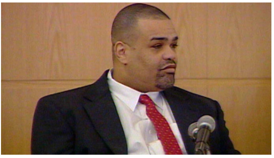 Van Brett Watkins, who pleaded guilty to second-degree murder, tells the jury that Panthers wide receiver Rae Carruth hired him to kill Carruth’s girlfriend on Rea Road in south Charlotte. (Court TV image)