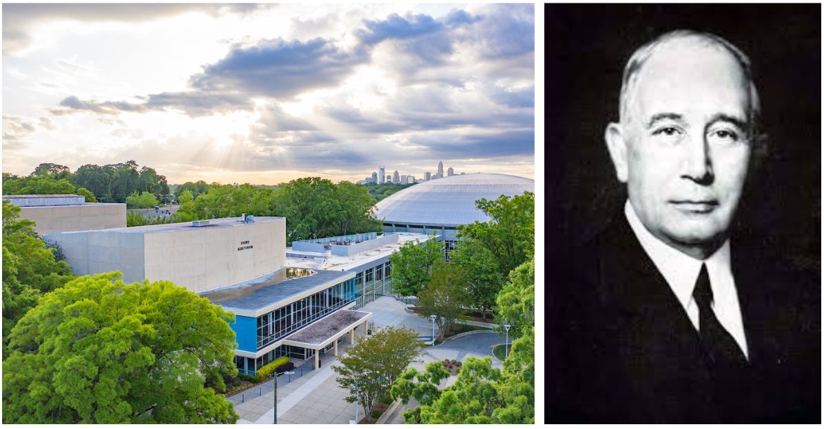 He criticized “straight up-and-down, steel-ribbed, glass-enclosed structures.” It is not without further irony that this description can be used to describe the exact architectural style of Ovens Auditorium, the iconic Charlotte landmark that bears his name. Designed by his friend A. G. Odell Jr., the venue opened on Sept. 11, 1955, and remains a hub for concerts, graduations and community events.
