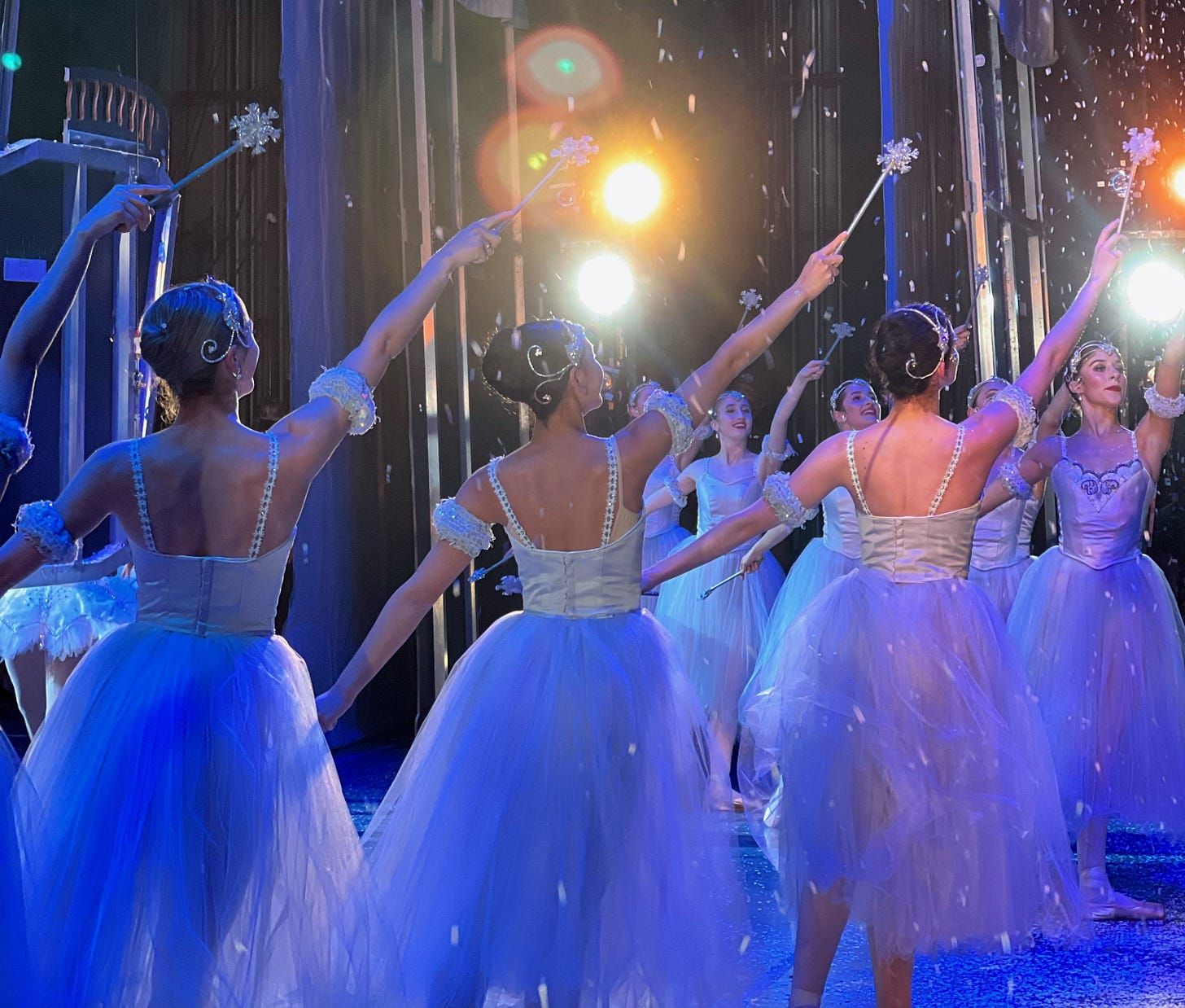 The snow scene, pictured here during a recent Charlotte Ballet "Nutcracker" dress rehearsal, is one of the most iconic scenes in the Nutcracker production. (Courtesy of Charlotte Ballet)