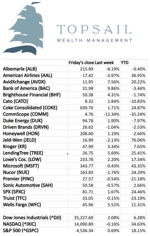 How local stocks of note fared last week (through Fridayâs close), and year to date: