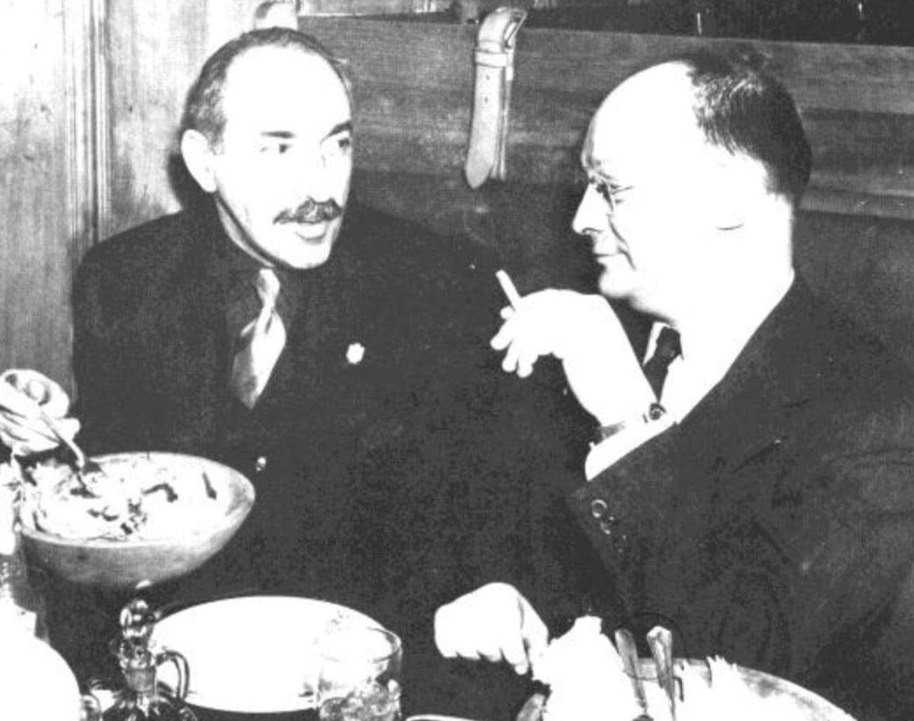 Cash (right) and his publisher, Alfred A. Knopf, a short time after the 1941 publication of The Mind of the South. (The Charlotte News photo)