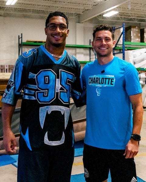 On Tuesday he took it a step further, after he was invited by club sponsor Coca-Cola Consolidated to team up with Carolina Panthers running back Chuba Hubbard and help assemble furniture for Beds for Kids. Coke Consolidated chipped in another $5,000 donation.
