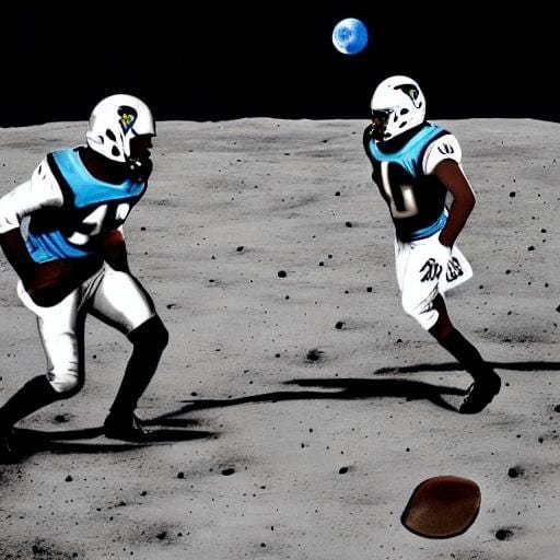 So we gave the image-making bot another assignment, in honor of last night’s Super Bowl: “Carolina Panthers playing football on the moon”: