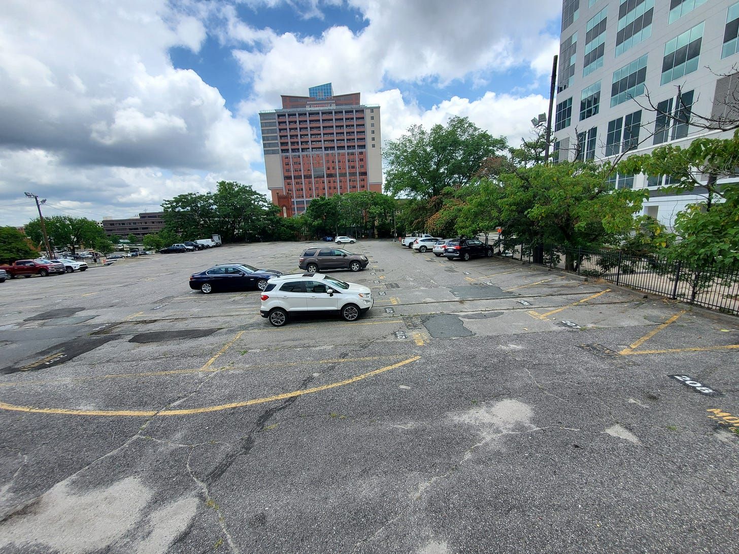 Not back to the office yet: an uptown parking lot at 2:30 p.m. on Tuesday.