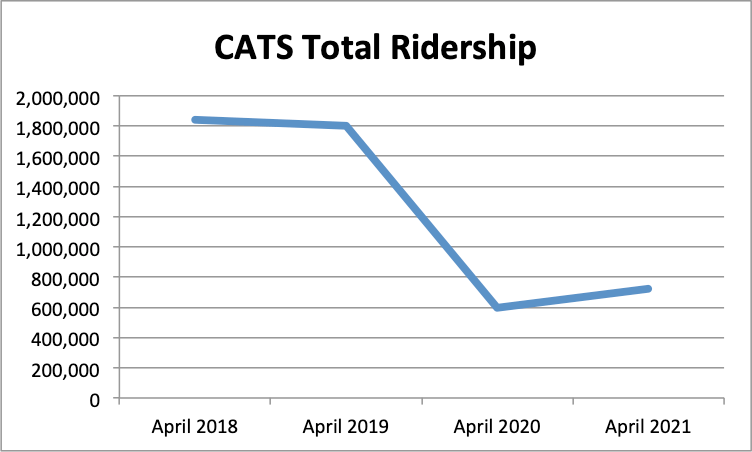 CATS carried more passengers in April 2021 than April 2020. But traffic is still down 60% compared with April 2019.