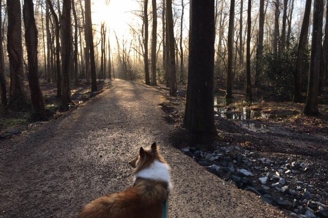 Twelve Mile Creek Greenway, Waxhaw segment. Want your early-morning stroll to touch two states? You’ve got it at this little-known gem if you’re willing to drive a bit out of Charlotte. Park at 1304 H.C. Nesbit Park Road, Waxhaw. Near the trail’s start, it splits into a Y. The left path is a paved section that skirts the Millbridge neighborhood and is nice for a short stroll. The right trail takes you onto the greenway, which winds 7.4 miles through forest, sometimes perched above a ravine of mature tulip poplar, red oak and beech. At the North Carolina-South Carolina state line, the trail crosses a graceful suspension bridge. Bikers are able to use this trail. The trail is very narrow in places overlooking a steep ravine drop-off, so meeting others could be a squeeze. Your dog, like our collies, might be a bit nervous about the swaying bridge, but it’s undeniably cool.