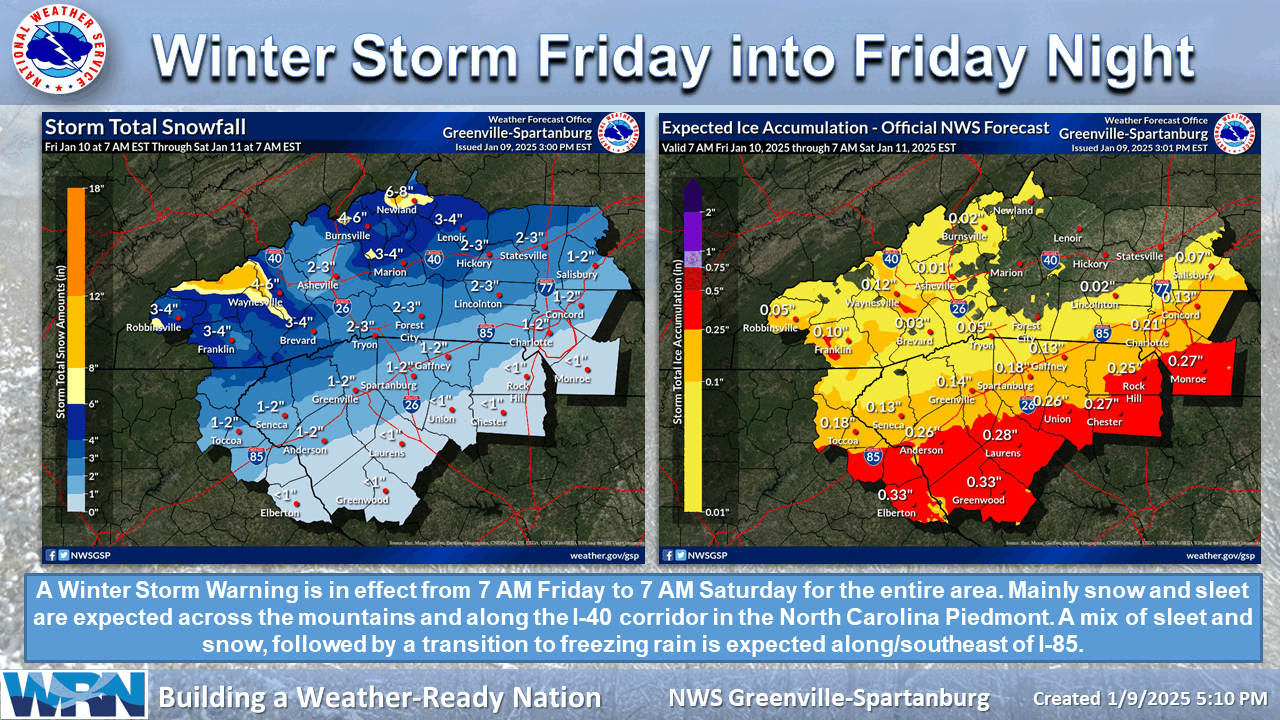 Closures announced: School districts around the region have announced that they’ll be closed Friday. Charlotte-Mecklenburg, Union, Gaston, Fort Mill, Iredell-Statesville, Hickory, York and Lancaster schools will all either be fully closed or have remote learning days.