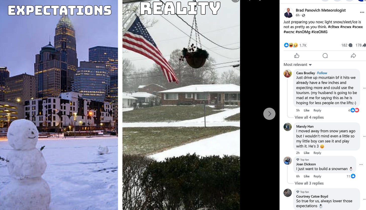 WCNC meteorologist Brad Panovich posted on social media on Thursday: “Just preparing you now: light snow/sleet/ice is not as pretty as you think.”